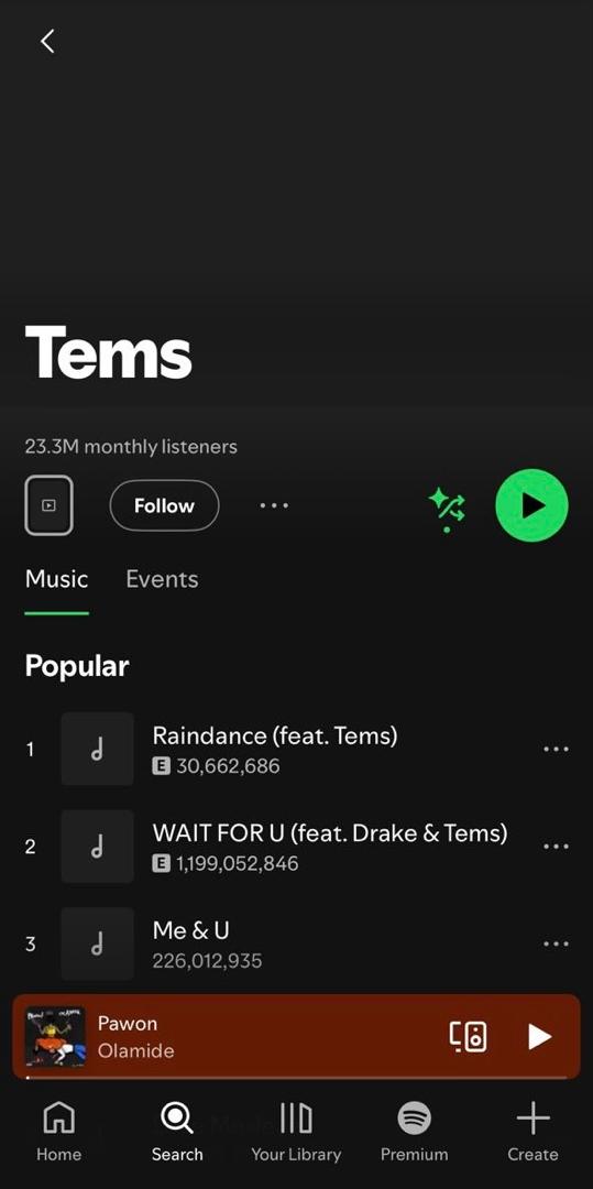 The new Spotify milestone highlights Tems’ growing popularity and influence in the music industry. Her music blends Afrobeat, R&B, and soul, appealing to fans across the globe.